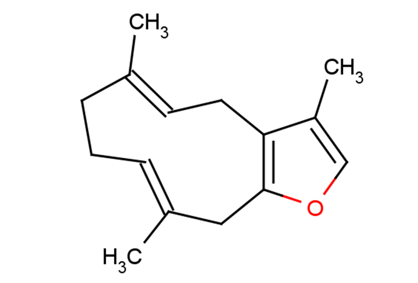 Brief DescriptionFuranodiene has anti-inflammatory and antioxidant activities, it is active against gram-positive bacteria and Candida albicans.The in vitro effects of Furanodiene were examined on two human breast cancer cell lines, MCF-7 and MDA-MB-231 cells.