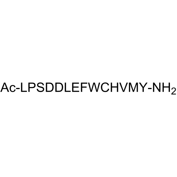 Brief DescriptionFz7-21 is a peptide antagonist of FZD7 . It antagonises WNT3A-induced Wnt-β-catenin signalling in HEK293 expressing FZD7. Fz7-21 impairs Wnt/β-catenin signaling in HEK293 cells stimulated with exogenous WNT3A (IC50=100?nM) or transfected with a construct expressing WNT3A or WNT1. Fz7-21 also blocks WNT3A-mediated stabilization of β-catenin in mouse L cells (IC50=50?nM).
