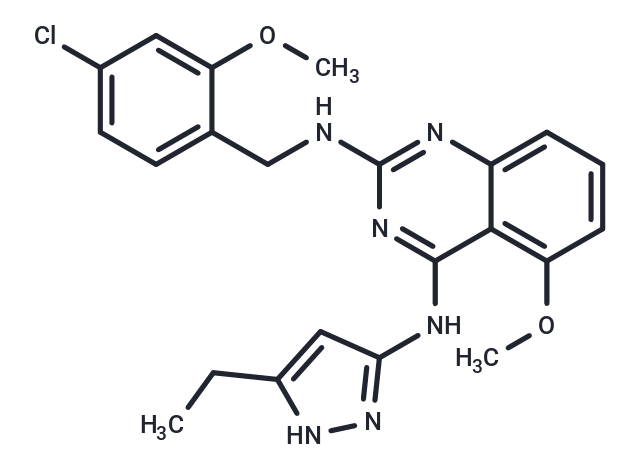 SMILESCCc1cc(Nc2nc(NCc3ccc(Cl)cc3OC)nc3cccc(OC)c23)n[nH]1
