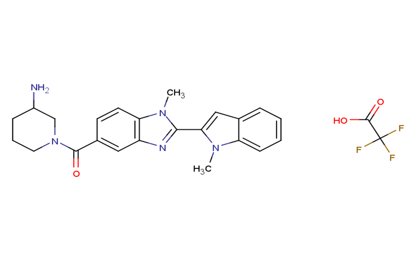 SMILESCN1C2=C(C=C(C=C2)C(=O)N3CCCC(C3)N)N=C1C4=CC5=CC=CC=C5N4C.C(=O)(C(F)(F)F)O