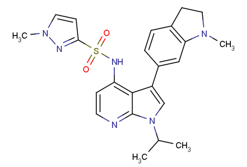 SMILESCC(C)n1cc(-c2ccc3CCN(C)c3c2)c2c(NS(=O)(=O)c3ccn(C)n3)ccnc12