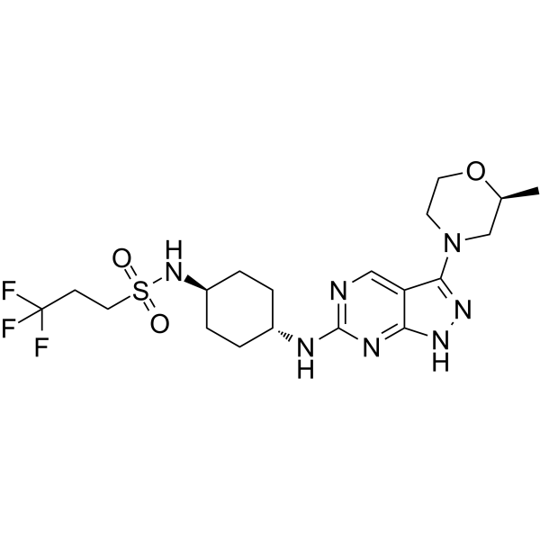 SynonymsDDD-853651 | 3,3,3-trifluoro-N-[4-[[3-[(2R)-2-methylmorpholin-4-yl]-1H-pyrazolo[3,4-d]pyrimidin-6-yl]amino]cyclohexyl]propane-1-sulfonamide