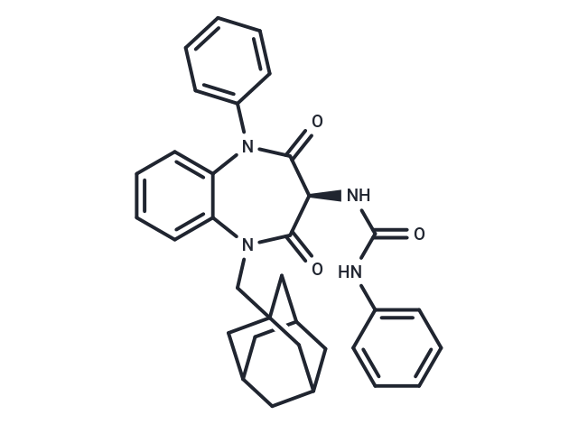 Brief DescriptionGV-150013X ((S)-1-(1-(adamantan-1-ylmethyl)-2,4-dioxo-5-phenyl-2,3,4,5-tetrahydro-1H-benzo[b][1,4]diazepin-3-yl)-3-phenylurea) is a potent CCKB antiagonist, pKi= 9.02.