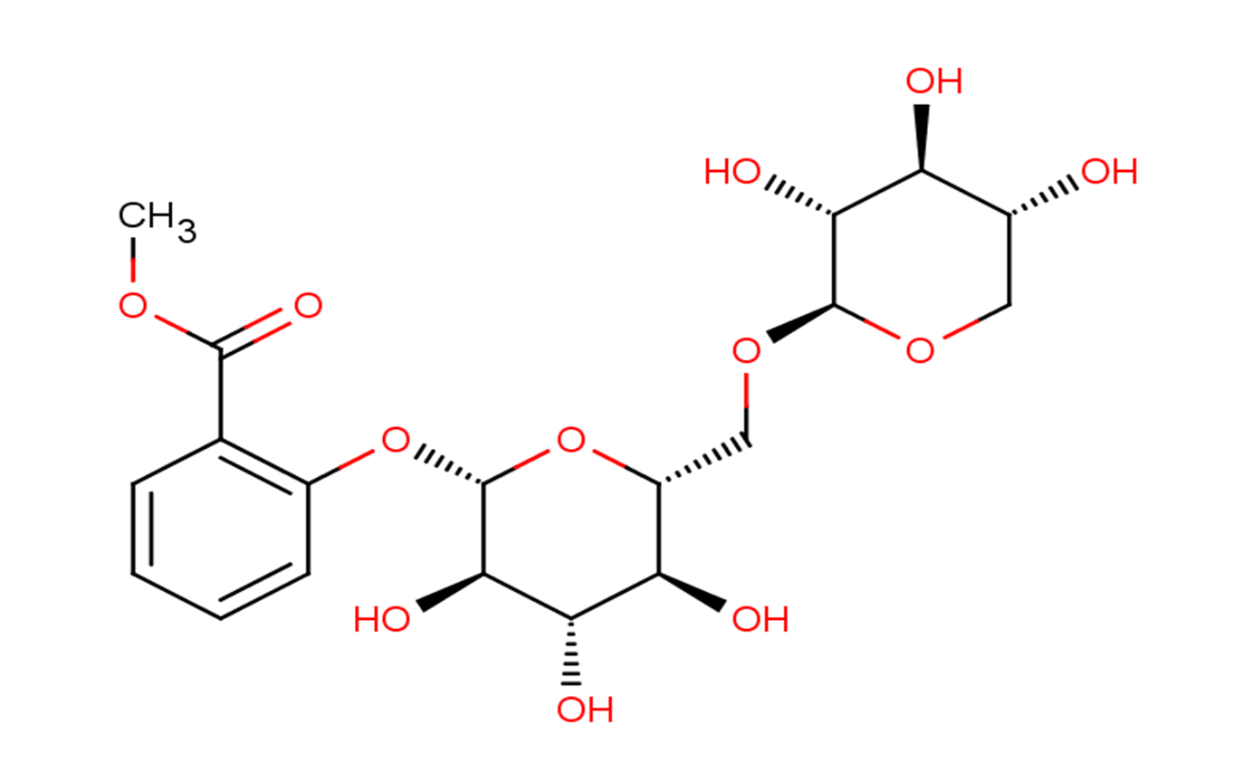 Brief DescriptionGaultherin has analgesic, and anti-inflammatory activities.Gaultherin lacks gastric ulcerogenic effect, because of it released salicylate in intestine slowly, not in stomach and it left the cyclooxygenase-1 unaffected, which was the source of cytoprotective prostaglandins in gastric epithelium.