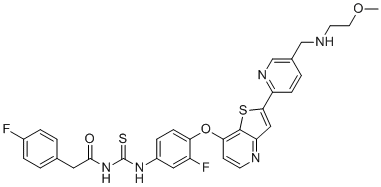 Chemical NameN-((3-fluoro-4-((2-(5-(((2-methoxyethyl)amino)methyl)pyridin-2-yl)thieno[3,2-b]pyridin-7-yl)oxy)phenyl)carbamothioyl)-2-(4-fluorophenyl)acetamide
