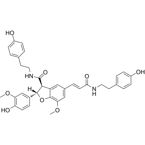 DescriptionGrossamide possesses potential anti-inflammatory effects, it also has potential anti-neuroinflammatory effects against lipopolysaccharide (LPS)-induced inflammatory response in BV2 microglia cells. Cis-Grossamide K exerts a particularly strong anti-melanogenic activity on the cells without high cell toxicity.
