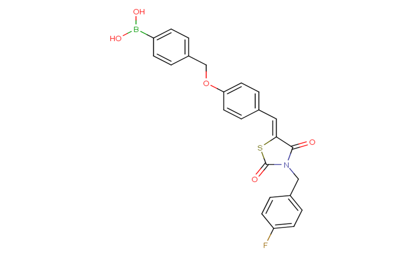 SMILESB(C1=CC=C(C=C1)COC2=CC=C(C=C2)/C=C\3/C(=O)N(C(=O)S3)CC4=CC=C(C=C4)F)(O)O