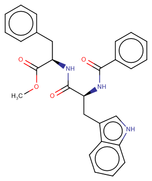 SMILESCOC(=O)[C@@H](Cc1ccccc1)NC(=O)[C@H](Cc1c[nH]c2ccccc12)NC(=O)c1ccccc1