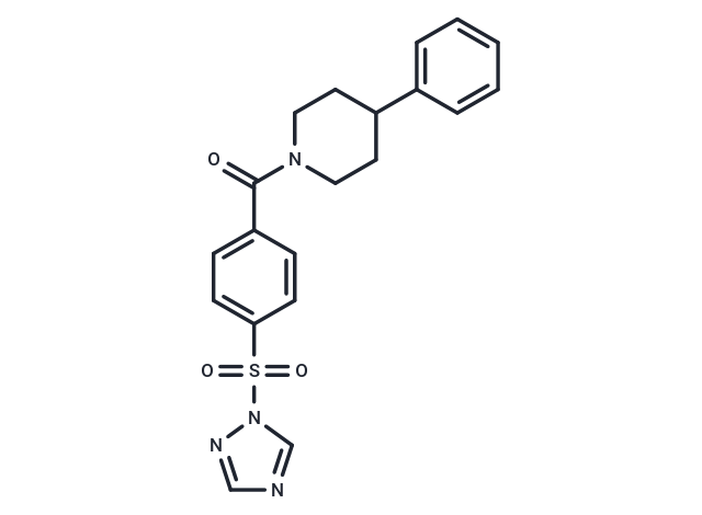 SMILESS(=O)(=O)(C1=CC=C(C(=O)N2CCC(CC2)C3=CC=CC=C3)C=C1)N4C=NC=N4