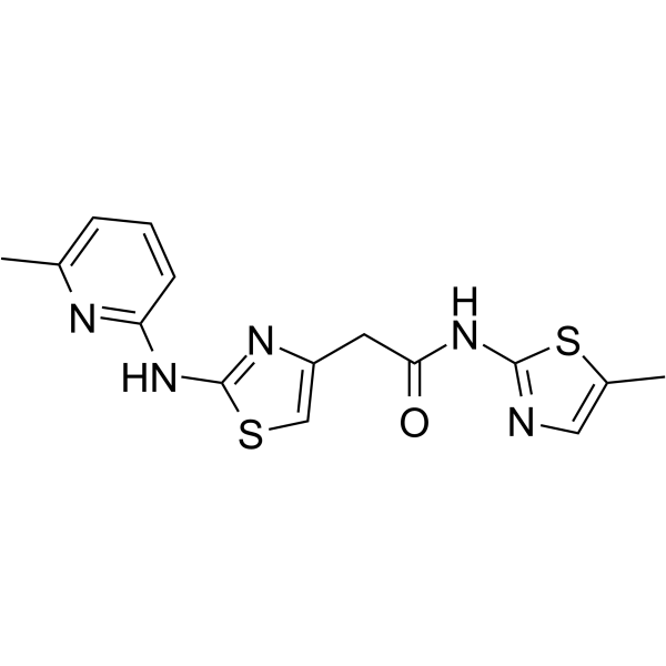 SMILESCc1cnc(NC(=O)Cc2csc(Nc3cccc(C)n3)n2)s1