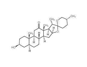 In VivoHecogenin (3.1-90 mg/kg; oral administration; for 15 hours; male Swiss mice) acutely administered, before ethanol, exhibits a potent gastroprotective effect. The Hecogenin pretreatment normalizes GSH levels and significantly reduces lipid peroxidation and nitrite levels in the stomach, as evaluated by the ethanol-induced gastric lesion model. Hecogenin also decreases MPO release and significantly protects the gastric mucosa. Animal Model:Male Swiss mice (20-30 g) with ethanol Dosage:3.1 mg/kg, 7.5 mg/kg, 15 mg/kg, 30 mg/kg, 60 mg/kg and 90 mg/kg Administration:Oral administration; for 15 hours Result:Normalized GSH levels and significantly reduced lipid peroxidation and nitrite levels in the stomach, as evaluated by the ethanol-induced gastric lesion model. Decreased MPO release and significantly protected the gastric mucosa.