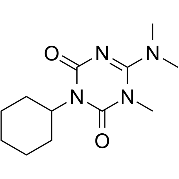 Hexazinone is a broad-spectrum herbicide from the triazine family. Hexazinone inhibits photosynthesis through binding to the D-1 quinone protein of the electron transport chain in photosystem II.