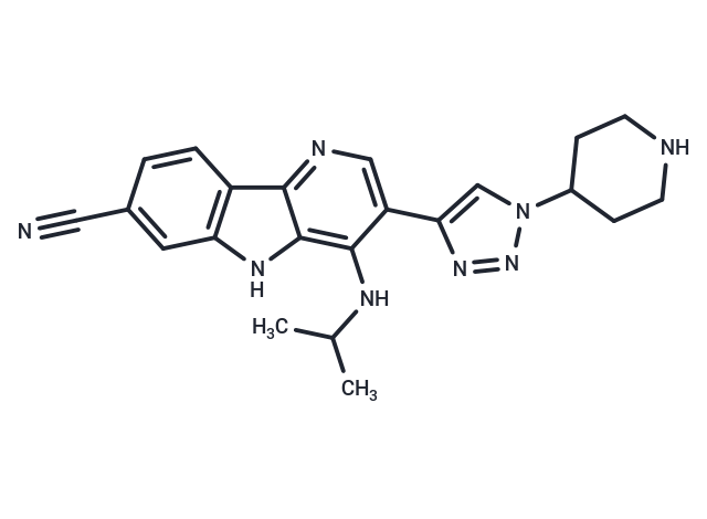 SMILESN#CC=1C=CC=2C3=NC=C(C=4N=NN(C4)C5CCNCC5)C(NC(C)C)=C3NC2C1
