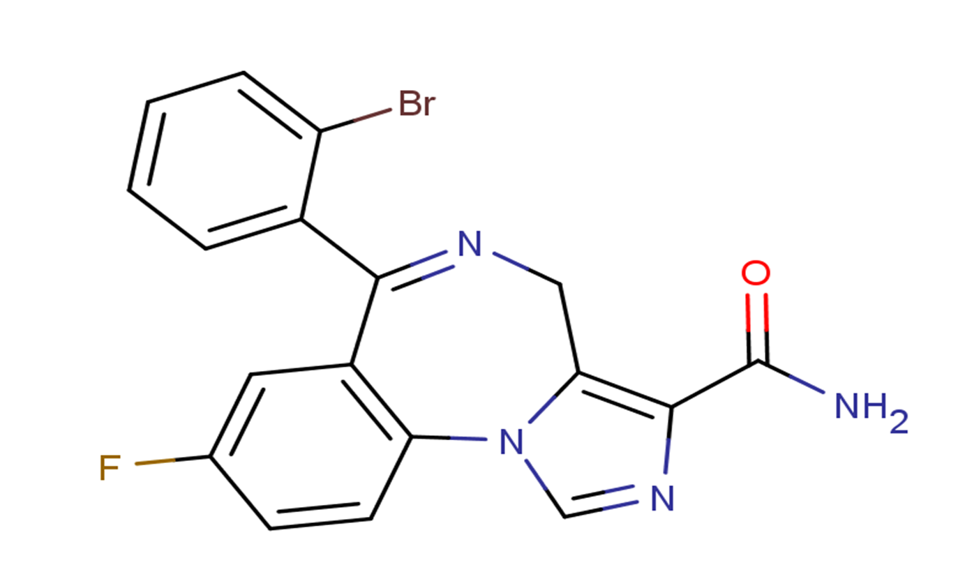 SMILESC1C2=C(N=CN2C3=C(C=C(C=C3)F)C(=N1)C4=CC=CC=C4Br)C(=O)N