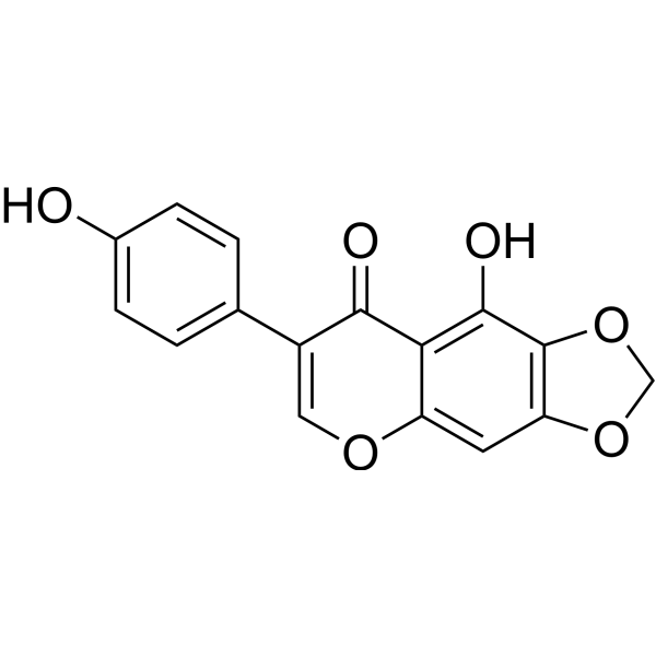 DescriptionIrilone has immunomodulatory, and α-amylase inhibitory activities, it exhibits the selective inhibition toward CYP3 A4 rather than other major human CYPs. Irilone exhibited prominent antioxidant activities with the IC50 value of 10.46μM. Irilone potentiated the effect of progesterone in both endometrial and ovarian cancer cell lines, it protected dopaminergic neurons against LPS-induced injury through inhibition of microglia activation and proinflammatory factors generation.