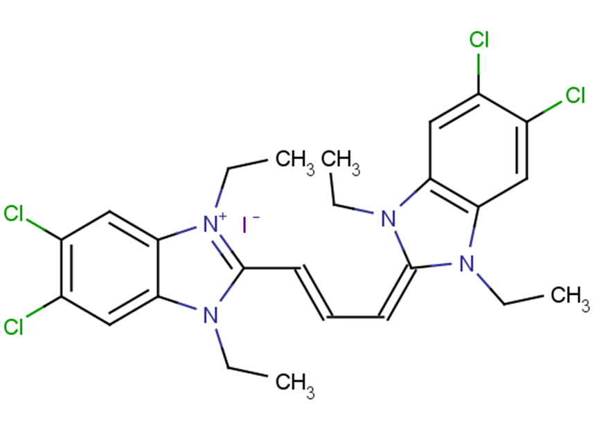 Brief DescriptionJC-1 is a fluorescent lipophilic carbocyanine dye. It has been used to measure mitochondrial membrane potential.?JC 1 can be used in a probe for measuring mitochondrial membrane potential by flow cytometry. JC-1 fluorescence is usually excited by the 488?nm laser wavelength common in flow cytometers. JC-1 (2.5?μM) exposed to murine L1210 lymphoblasts, can be detected the presence of both cytoplasmic JC-1 monomer and mitochondrial J-aggregates in these cells.