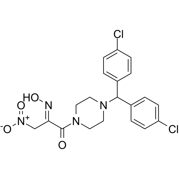 SMILESO=C(C(C[N+]([O-])=O)=NO)N1CCN(C(C2=CC=C(Cl)C=C2)C3=CC=C(Cl)C=C3)CC1