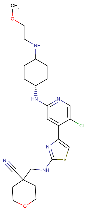 Chemical Name4-(((4-(5-Chloro-2-(((1r,4r)-4-((2-methoxyethyl)amino)cyclohexyl)amino)pyridin-4-yl)thiazol-2-yl)amino)methyl)tetrahydro-2H-pyran-4-carbonitrile