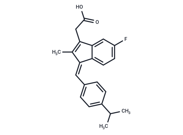SMILESCC(C)c1ccc(\C=C2\C(C)=C(CC(O)=O)c3cc(F)ccc23)cc1