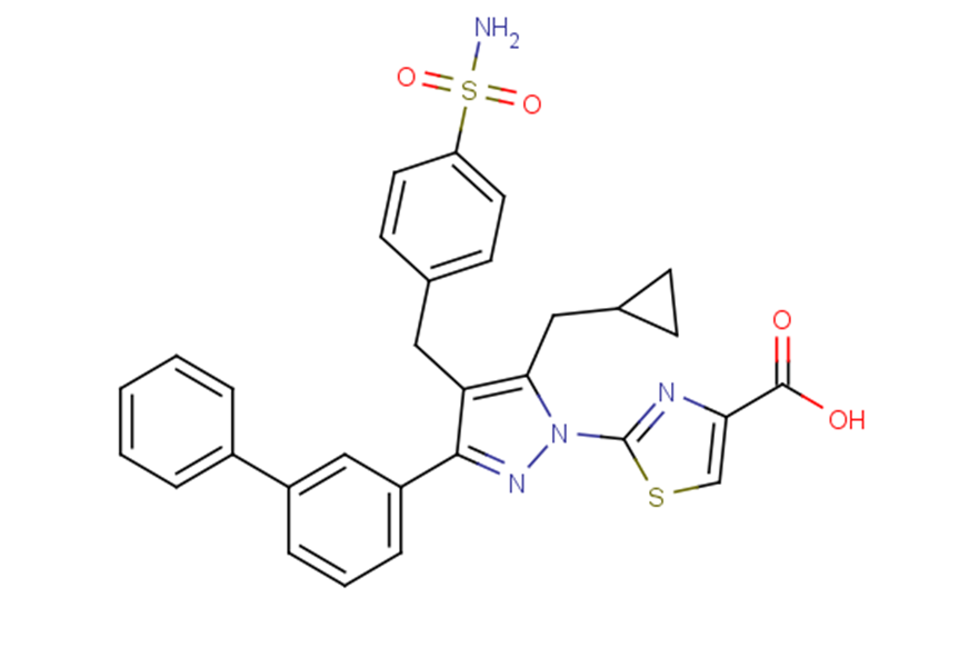 SMILESO=S(C1=CC=C(CC2=C(N(C3=NC(C(O)=O)=CS3)N=C2C4=CC=CC(C5=CC=CC=C5)=C4)CC6CC6)C=C1)(N)=O