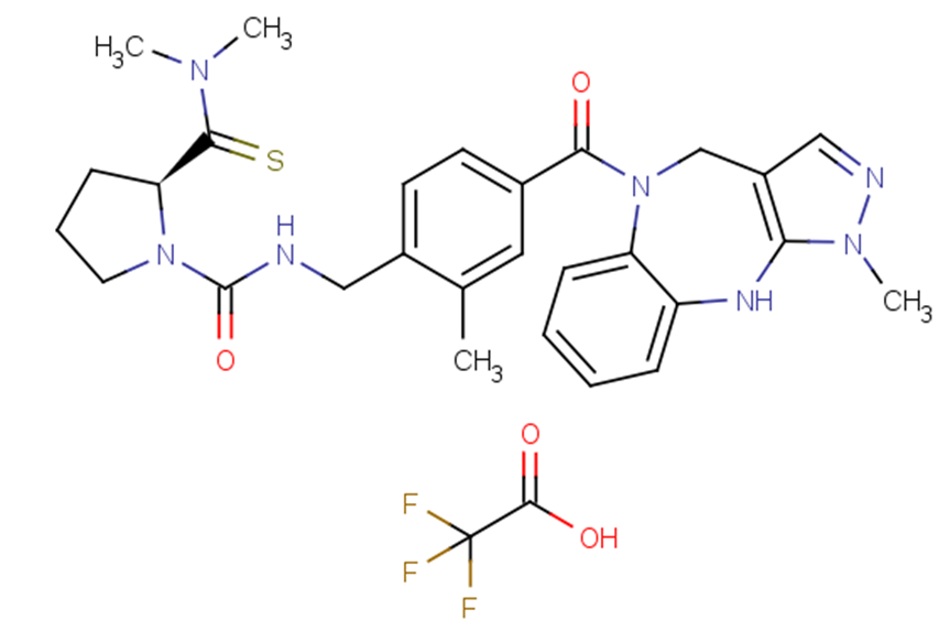 SMILESOC(=O)C(F)(F)F.CN(C)C(=S)[C@@H]1CCCN1C(=O)NCc1ccc(cc1C)C(=O)N1Cc2cnn(C)c2Nc2ccccc12