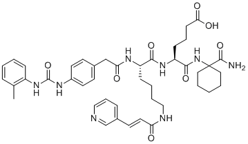 Chemical Name(S)-6-((1-carbamoylcyclohexyl)amino)-6-oxo-5-((S)-6-((E)-3-(pyridin-3-yl)acrylamido)-2-(2-(4-(3-(o-tolyl)ureido)phenyl)acetamido)hexanamido)hexanoic acid