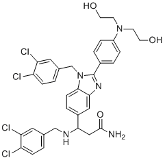 SMILESO=C(N)CC(C1=CC=C2N(CC3=CC=C(Cl)C(Cl)=C3)C(C4=CC=C(N(CCO)CCO)C=C4)=NC2=C1)NCC5=CC=C(Cl)C(Cl)=C5
