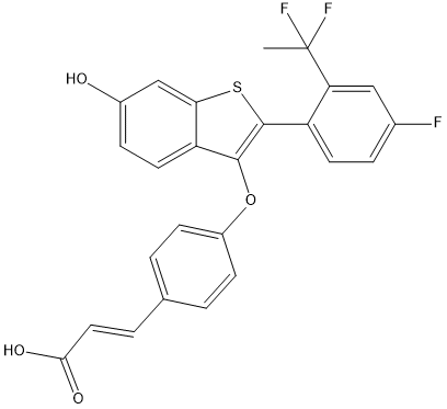 Chemical Name(E)-3-(4-((2-(2-(1,1-Difluoroethyl)-4-fluorophenyl)-6-hydroxybenzo[b]thiophen-3-yl)oxy)phenyl)acrylic acid