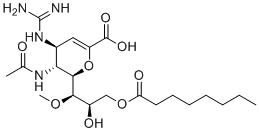 Chemical Name(4S,5R,6R)-5-acetamido-4-guanidino-6-[(1R,2R)-2-hydroxy-1-methoxy-3-(octanoyloxy)propyl]-5,6-dihydro-4H-pyran-2-carboxylic acid