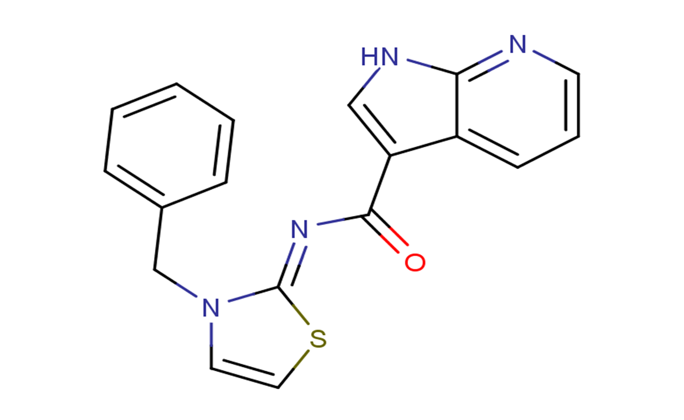 SMILESO=C(C1=CNC2=NC=CC=C12)/N=C(SC=C3)/N3CC4=CC=CC=C4