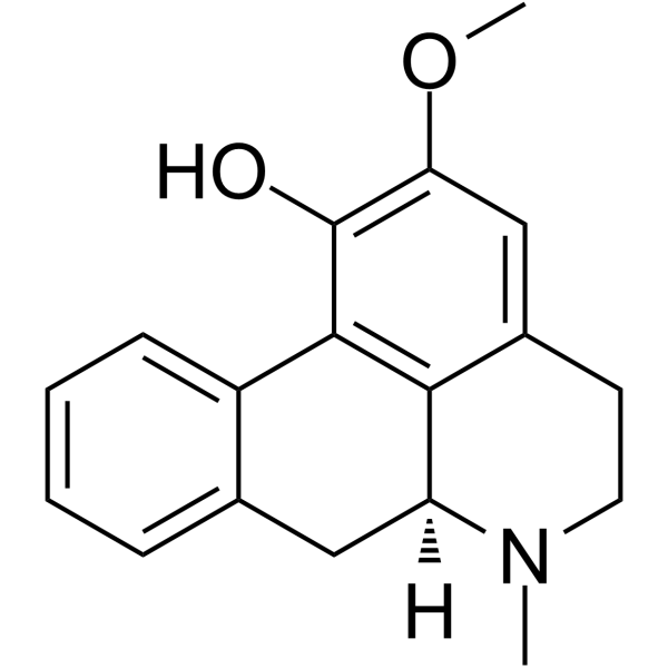 Description(+)-Lirinidine has antioxidative activity, and it can significantly inhibit the proliferation of melanoma cells; it also shows potent inhibition of melanogenesis. Lirinidine exhibits significant inhibition of collagen, arachidonic acid and platelet-activating factor-induced platelet aggregation.(In Vitro):Sixteen compounds were extracted and purified from the leaves of Liriodendron tulipifera. These compounds include aporphines, oxoaporphine, coumarin, sesquiterpene lactone, benzenoids, cyclitol and steroids. (+)-Norstephalagine (2) (an aporphine) and scopoletin (8) (a coumarin) were isolated from Liriodendron tulipifera leaves from the first time. The identified compounds were screened for their antiradical scavenging, metal chelating and ferric reducing power activities. The results have showed that these compounds have antioxidative activity. The study has also examined the chemopreventive property of the isolated compounds against human melanoma cells A375. The results showed that (-)-anonaine (1), (-)-liridinine (3), (+)-Lirinidine (6), lysicamine (7) and epitulipinolide diepoxide (9) significantly inhibited the proliferation of melanoma cells.