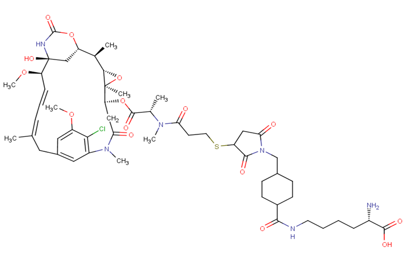 SMILESC[C@@H]1[C@@H]2C[C@]([C@@H](/C=C/C=C(/CC3=CC(=C(C(=C3)OC)Cl)N(C(=O)C[C@@H]([C@]4([C@H]1O4)C)OC(=O)[C@H](C)N(C)C(=O)CCSC5CC(=O)N(C5=O)CC6CCC(CC6)C(=O)NCCCC[C@@H](C(=O)O)N)C)\C)OC)(NC(=O)O2)O