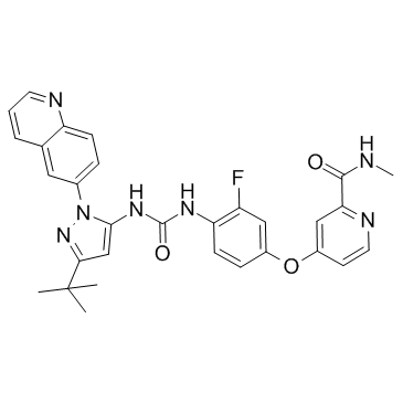 SMILESO=C(NC1=CC=C(OC2=CC(C(NC)=O)=NC=C2)C=C1F)NC3=CC(C(C)(C)C)=NN3C4=CC=C5N=CC=CC5=C4