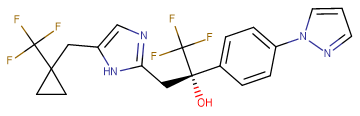 SMILESC1CC1(CC2=CN=C(N2)C[C@](C3=CC=C(C=C3)N4C=CC=N4)(C(F)(F)F)O)C(F)(F)F