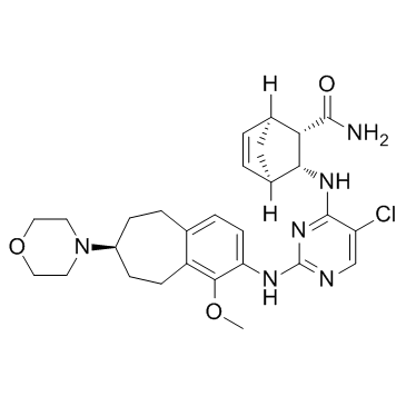 Chemical NameBicyclo[2.2.1]hept-5-ene-2-carboxamide, 3-[[5-chloro-2-[[(7S)-6,7,8,9-tetrahydro-1-methoxy-7-(4-morpholinyl)-5H-benzocyclohepten-2-yl]amino]-4-pyrimidinyl]amino]-, (1S,2S,3R,4R)-