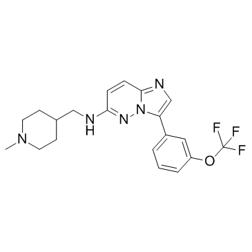 Chemical NameImidazo[1,2-b]pyridazin-6-amine, N-[(1-methyl-4-piperidinyl)methyl]-3-[3-(trifluoromethoxy)phenyl]-