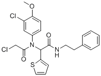 SMILESCOC1=C(C=C(C=C1)N(C(C2=CC=CS2)C(=O)NCCC3=CC=CC=C3)C(=O)CCl)Cl