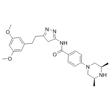 Chemical NameBenzamide, N-[5-[2-(3,5-dimethoxyphenyl)ethyl]-1H-pyrazol-3-yl]-4-[(3R,5S)-3,5-dimethyl-1-piperazinyl]-, rel-