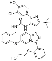 Chemical Name1-(3-(tert-butyl)-1-(3-chloro-4-hydroxyphenyl)-1H-pyrazol-5-yl)-3-(2-((3-(2-((2-hydroxyethyl)thio)phenyl)-[1,2,4]triazolo[4,3-a]pyridin-6-yl)thio)benzyl)urea