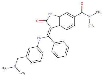 SMILESCN(C)CC1=CC(=CC=C1)N/C(=C\2/C3=C(C=C(C=C3)C(=O)N(C)C)NC2=O)/C4=CC=CC=C4