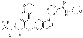 Chemical Name3-(5-((1R,2S)-2-(2,2-difluoropropanamido)-1-(2,3-dihydrobenzo[b][1,4]dioxin-6-yl)propoxy)-1H-indazol-1-yl)-N-((R)-tetrahydrofuran-3-yl)benzamide