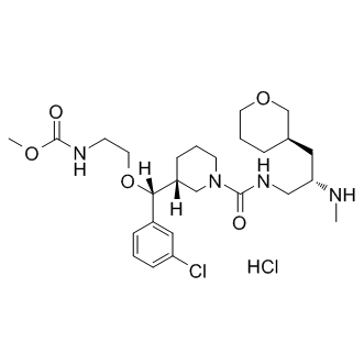 Chemical NameCarbamic acid, N-[2-[(R)-(3-chlorophenyl)[(3R)-1-[[[(2S)-2-(methylamino)-3-[(3R)-tetrahydro-2H-pyran-3-yl]propyl]amino]carbonyl]-3-piperidinyl]methoxy]ethyl]-, methyl ester, hydrochloride (1:1)