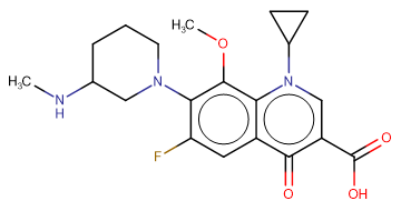 SMILESCNC1CCCN(C1)c2c(cc3c(c2OC)n(cc(c3=O)C(=O)O)C4CC4)F