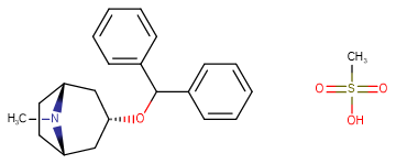 SMILESCN1[C@@H]2C[C@@H](OC(C3=CC=CC=C3)C4=CC=CC=C4)C[C@H]1CC2.OS(C)(=O)=O