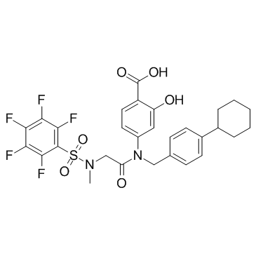 Chemical NameBenzoic acid, 4-[[(4-cyclohexylphenyl)methyl][2-[methyl[(2,3,4,5,6-pentafluorophenyl)sulfonyl]amino]acetyl]amino]-2-hydroxy-