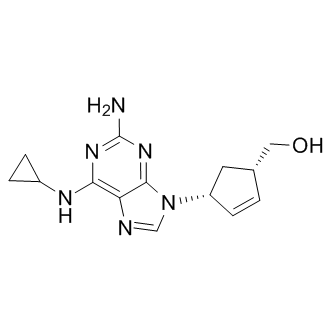 In VitroAbacavir (15 and 150 μM, 0-120 h) inhibits cell growth, affects cell cycle progression, induces senescence and modulates LINE-1 mRNA expression in prostate cancer cell lines.Abacavir (15 and 150 μM, 18 h) significantly reduces cell migration and inhibits cell invasion.Abacavir induces fat apoptosis. Cell Proliferation Assay Cell Line:PC3, LNCaP and WI-38 Concentration:15 and 150 μM Incubation Time:0, 24, 48, 72 and 96 h Result:Showed a dose-dependent growth inhibition on PC3 and LNCaP.Cell Cycle Analysis Cell Line:PC3 and LNCaP Concentration:150 μM Incubation Time:0, 18, 24, 48, 72, 96 and 120 h Result:Caused a very high accumulation of cells in S phase in PC3 and LNCaP cells, and G2/M phase increment was observed in PC3 cells.Cell Migration Assay Cell Line:PC3 and LNCaP Concentration:15 and 150 μM Incubation Time:18 h Result:Significantly reduced cell migration.Cell Invasion AssayCell Line:PC3 and LNCaP Concentration:15 and 150 μM Incubation Time:18 h Result:Significantly inhibited cell invision.