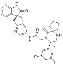Chemical Name2-[(8R)-8-(3,5-difluorophenyl)-8-methyl-10-oxo-6,9-diazaspiro[4.5]dec-9-yl]-N-[(6S)-2'-oxo-1',2',5,7-tetrahydrospiro[cyclopenta[b]pyridine-6,3'-pyrrolo[2,3-b]pyridin]-3-yl]acetamide