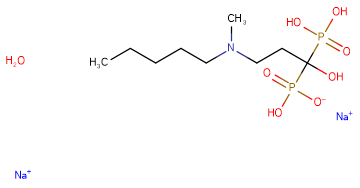 SMILESO.[Na+].[Na+].CCCCCN(C)CCC(O)(P(O)(O)=O)P(O)([O-])=O