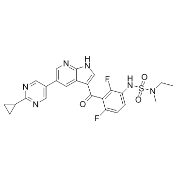 Chemical NameSulfamide, N'-[3-[[5-(2-cyclopropyl-5-pyrimidinyl)-1H-pyrrolo[2,3-b]pyridin-3-yl]carbonyl]-2,4-difluorophenyl]-N-ethyl-N-methyl-