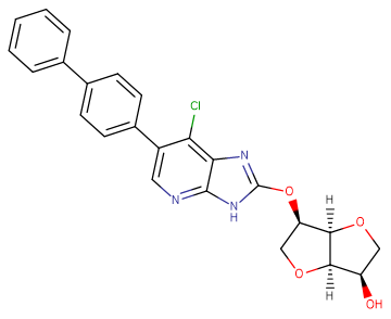 SMILESClC1=C2C(NC(O[C@@H]3CO[C@@]4([H])[C@]3([H])OC[C@H]4O)=N2)=NC=C1C5=CC=C(C6=CC=CC=C6)C=C5